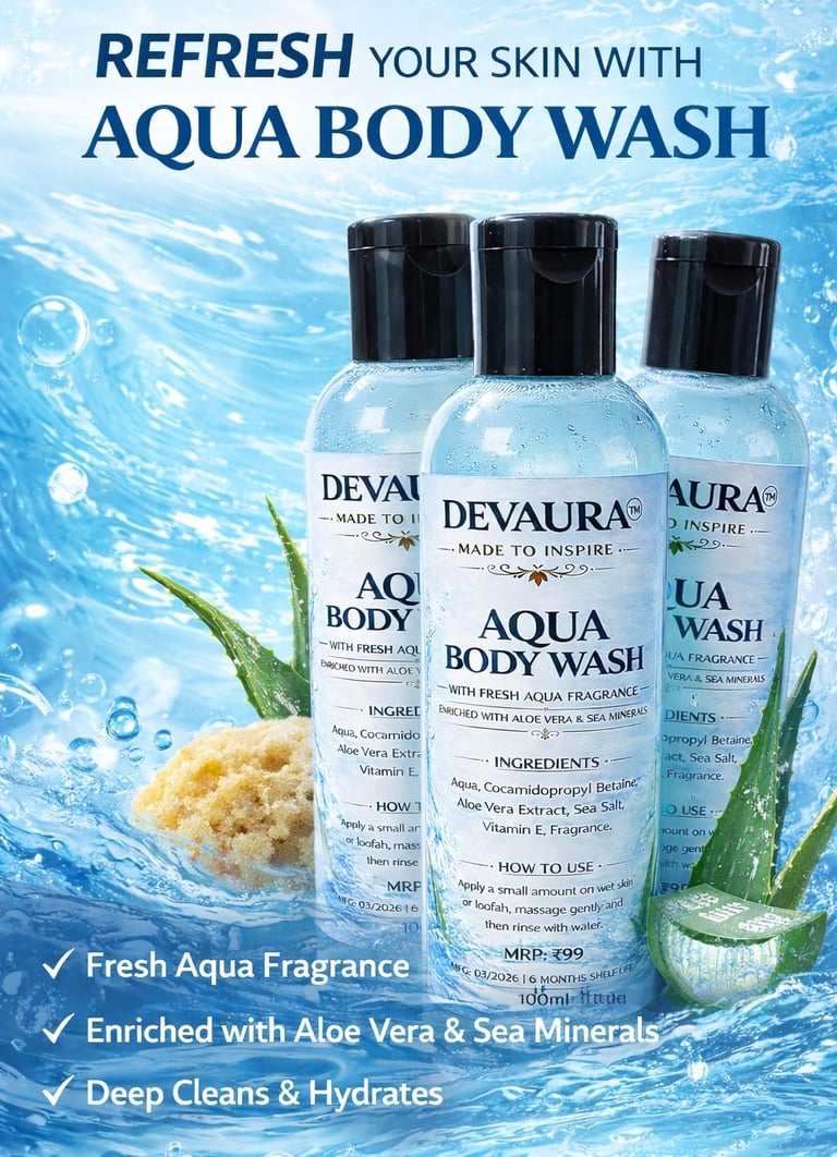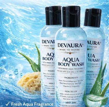 In the hustle of our demanding daily lives, the morning shower is often the only moment we have to truly reset and recharge before facing the world. It should be a revitalizing awakening, not just a routine task. Enter the Devaura™ Aqua Body Wash, a refreshing surge of vitality meticulously formulated to transform your bathroom into a crisp, coastal sanctuary. True to our foundational philosophy, "Made to Inspire," this premium cleansing gel is designed to wash away the lethargy of sleep and envelop your senses in the pure, energizing essence of the ocean.