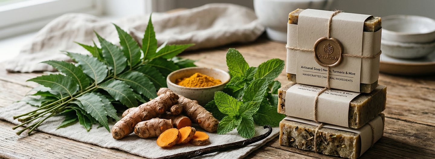 The Purifiers: Crafted for those seeking clarity and rejuvenation, our Neem Tulsi and Mint varieties leverage the time-honored antiseptic power of traditional herbs. These bars detoxify and protect, providing a crisp, cinematic freshness that awakens the senses.