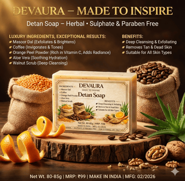 Devaura Detan Soap is "Made to Inspire" a return to purity. By combining the gentle abrasive power of walnut